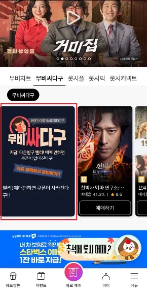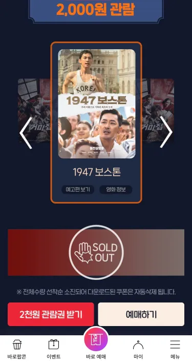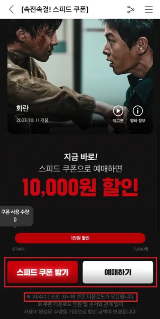 - 선착순 이벤트 참여를 통해 예매쿠폰 다운 (무료 또는 최대 5천 원 관람권)