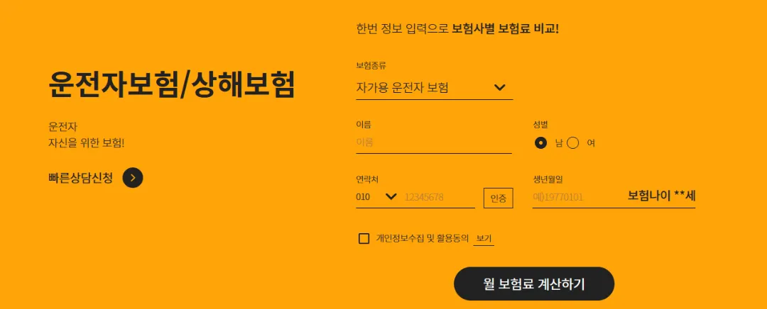 운전자보험 비교 사이트를 통해 복잡한 과정과 시간을 절약하여 자신에게 필요한 보장내용을 보다 더 빠르고 쉽게 비교하고 실시간으로 각 보험사의 상담원과 통화 연결을 통해 가입을 할 수 있습니다. 여러 보험에 대해 한눈에 비교하여 더욱 유리하게 자신에게 맞는 보험가입을 하실 수 있습니다.