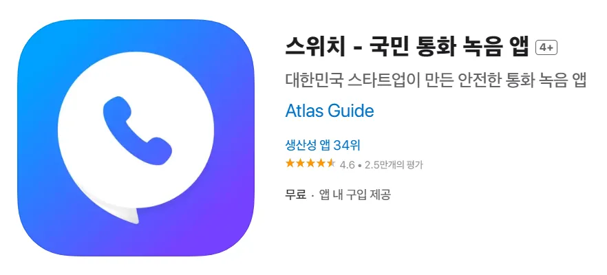 이번에 설명드릴 어플은 국내 스타트 기업에서 계발한 ai통화 녹음 어플인 스위치 통화녹음 어플입니다. 아래에서 자세히 설명드리겠습니다.